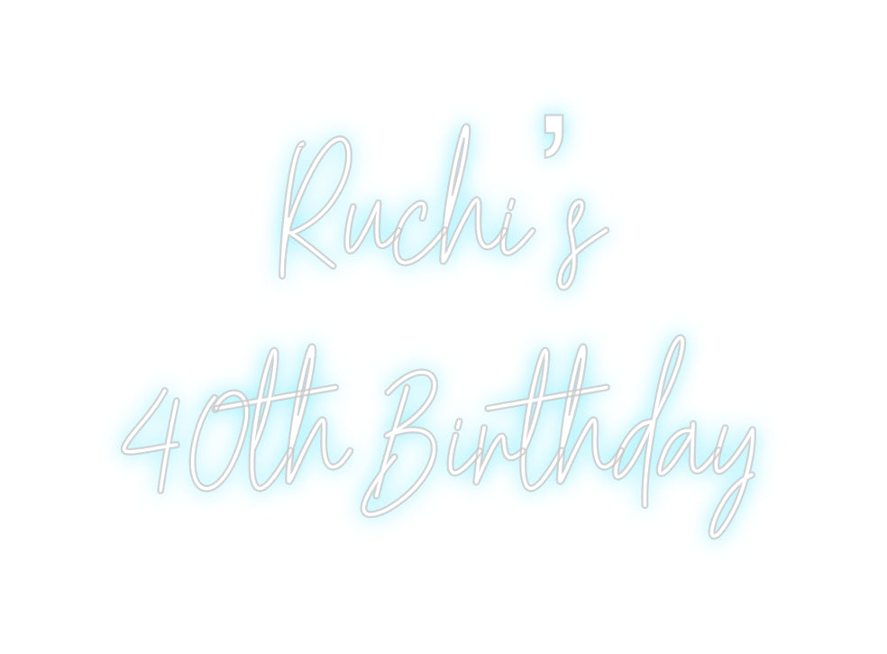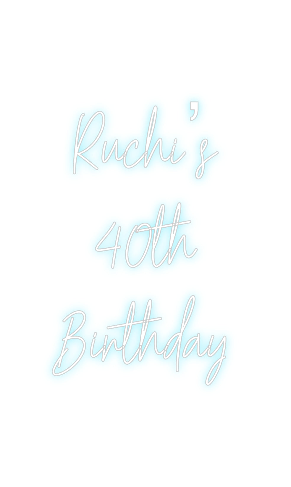 Text: Ruchi’s 40th Birthday Text Align: center Font: HestericaColour: Ice BlueSize: 60cm wide / 60cm X 96.7cm / 23.62in X 38.07inBackboard: Cut to Letter (free upgrade)Jacket: White JacketMounting: Wall mounting screwsAdd a Heart or Star (Optional): None (Default)Neon Tube Thickne...