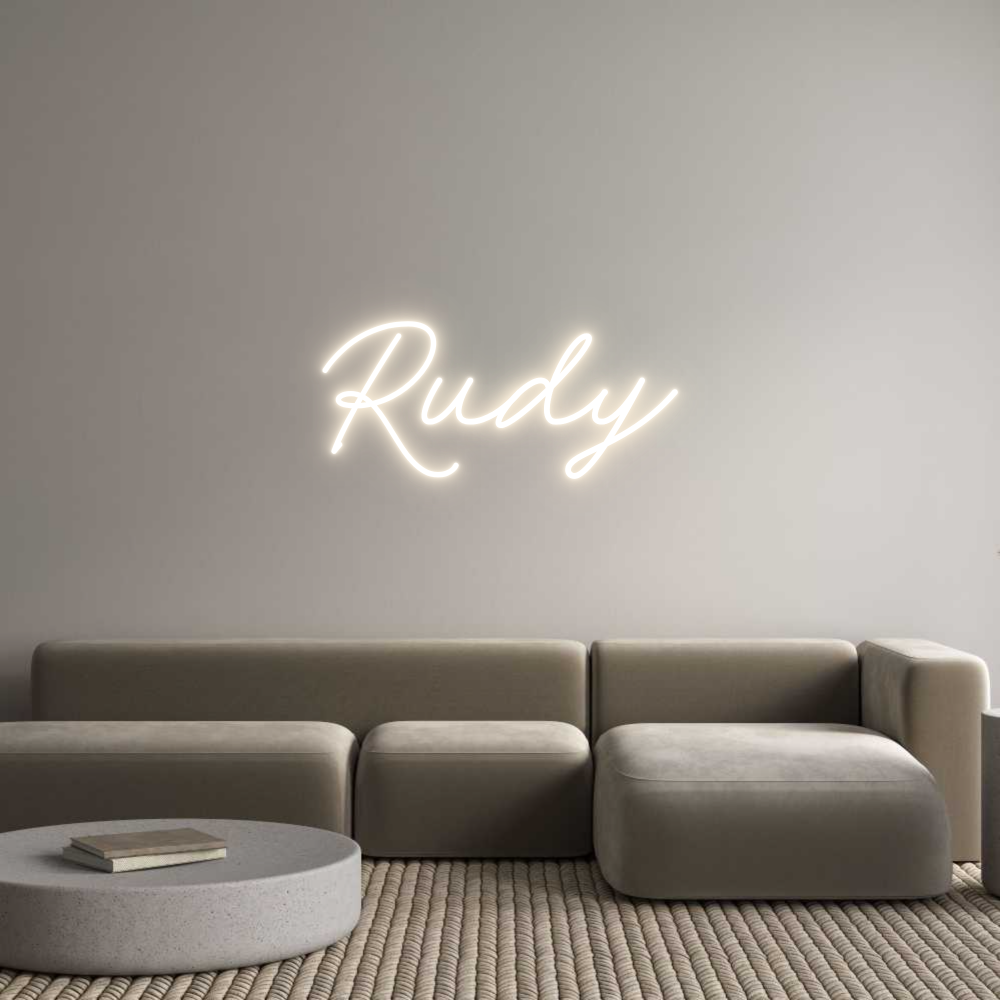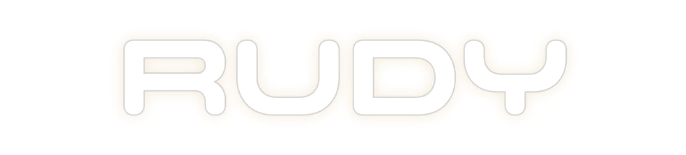 Text: RUDY Text Align: left Font: SpaceColour: Warm WhiteSize: 100cm wide / 100cm X 16.58cm / 39.37in X 6.53inBackboard: Cut to Letter (free upgrade)Jacket: White JacketMounting: Wall mounting screwsAdd a Heart or Star (Optional): None (Default)Neon Tube Thickness: Bold Tube (8...