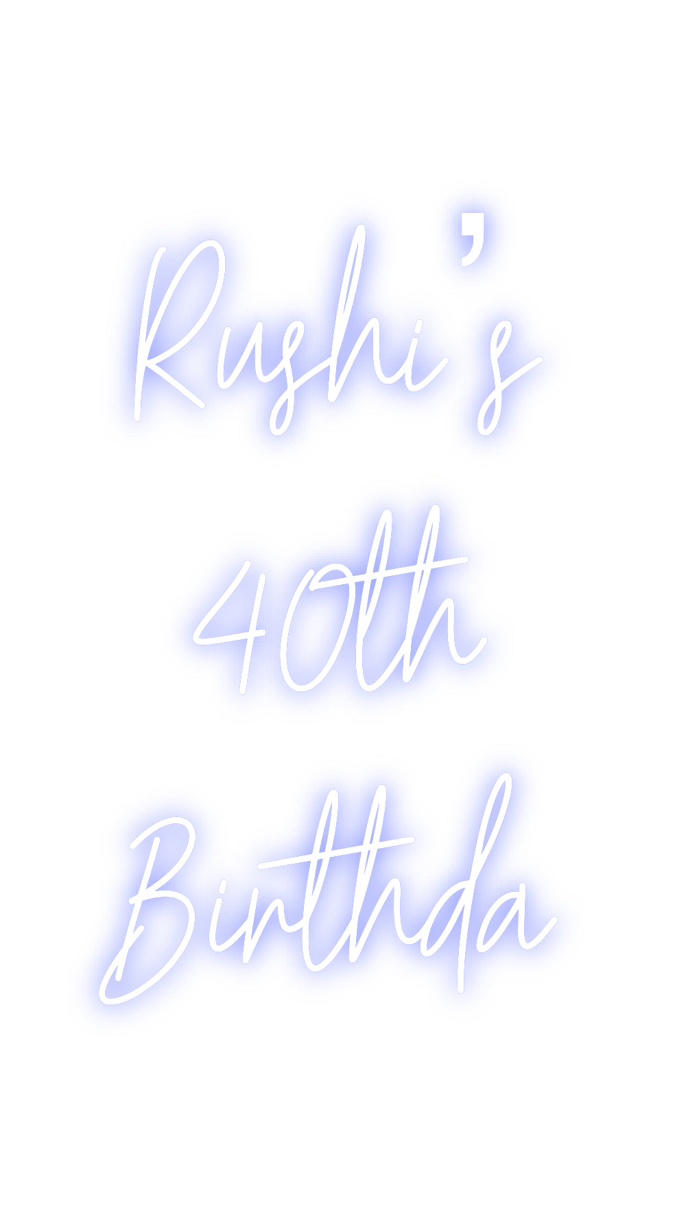 Text: Rushi’s 40th Birthda Text Align: center Font: HestericaColour: BlueSize: 40cm wide / 40cm X 69.68cm / 15.75in X 27.43inBackboard: Cut to Letter (free upgrade)Jacket: White JacketMounting: Wall mounting screwsAdd a Heart or Star (Optional): None (Default)Neon Tube Thickness: B...