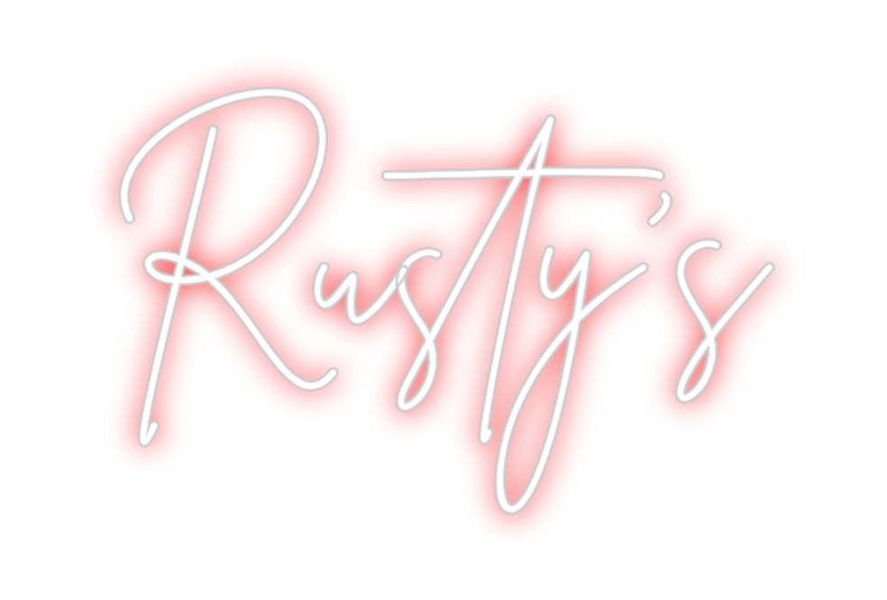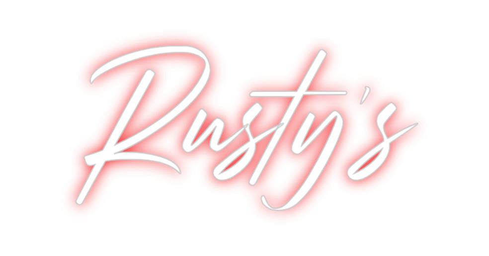 Text: Rusty's Text Align: left Font: BrittanyColour: Colour Changing Neon sign/ RGB +85% price increase. Lights can be controlled through remoteSize: 40cm wide / 40cm X 24.67cm / 15.75in X 9.71inBackboard: Cut to Letter (free upgrade)Jacket: White JacketMounting: Wall mounting screws...