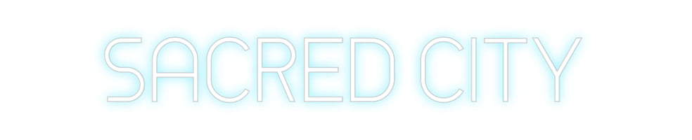 Text: SACRED CITY Text Align: left Font: TimeColour: Ice BlueSize: 120cm wide / 120cm X 17.17cm / 47.24in X 6.76inBackboard: Cut to ShapeBackboard Colour: Clear Acrylic BackboardJacket: White JacketMounting: Wall mounting screwsAdd a Heart or Star (Optional): None (Default)Neon...