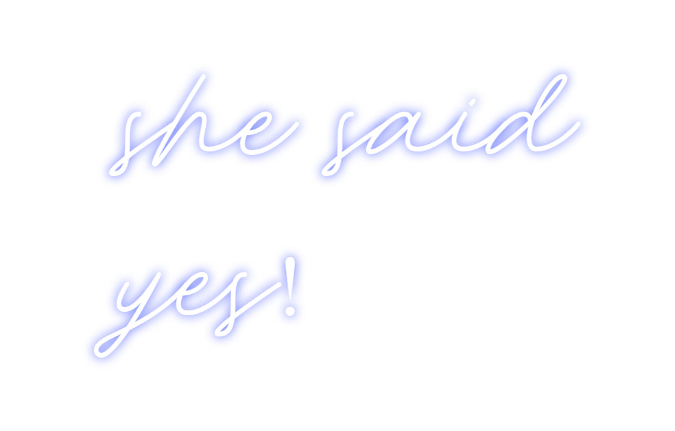 Text: she said yes! Text Align: left Font: RocketColour: BlueSize: 60cm wide / 60cm X 34.7cm / 23.62in X 13.66inBackboard: Cut to Letter (free upgrade)Jacket: Coloured JacketMounting: Wall mounting screwsAdd a Heart or Star (Optional): None (Default)Neon Tube Thickness: Classic Tub...