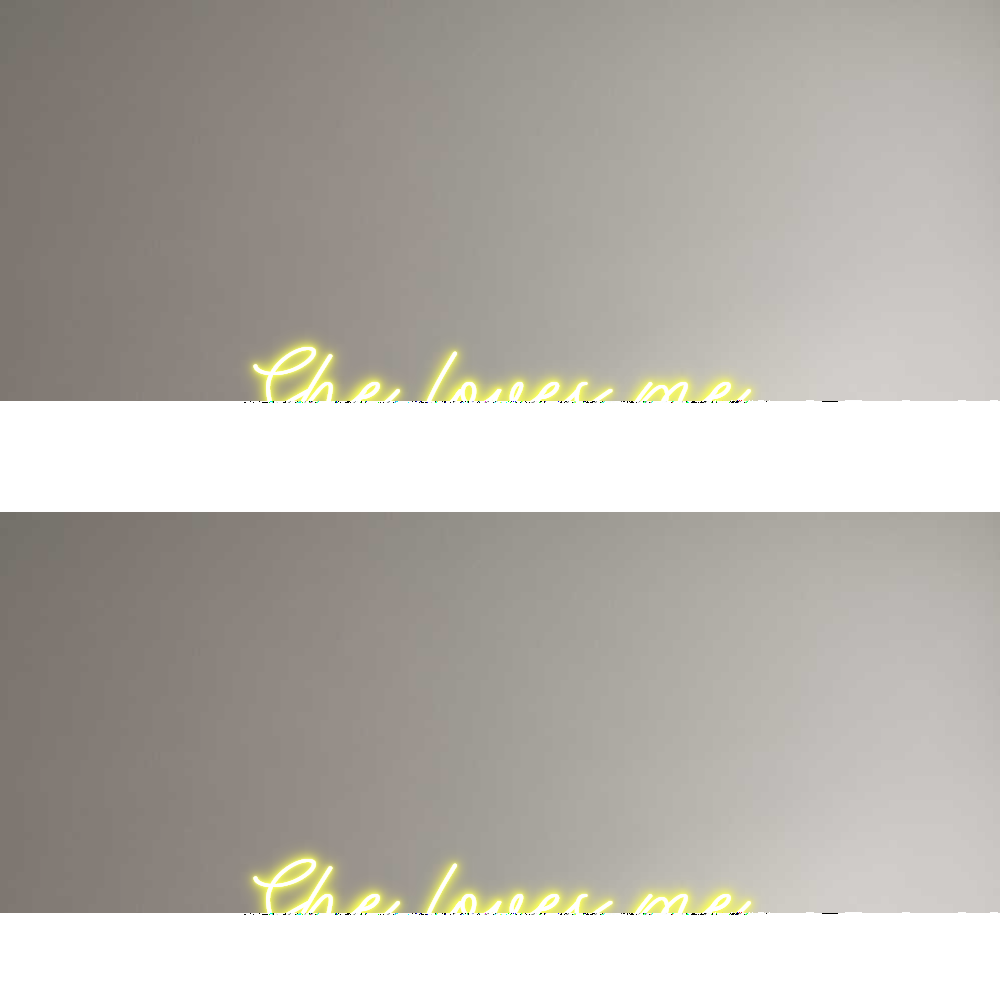 Text: She loves me Text Align: LeftFont: RocketColor: YellowSize: 80cm wide / 80cm X 13.38cm / 31.5in X 5.27inMaterial: IndoorBackboard: Cut to ShapeBackboard Color: Clear Acrylic BackboardJacket: Coloured JacketMounting: HangingAdd a Heart or Star (Optional): None (Default)Neon Tube Thickn...