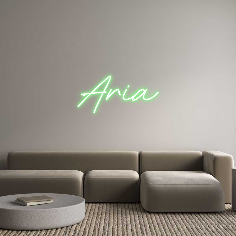 Text: Aria Text Align: CenterFont: RocketColor: Light GreenSize: 40cm wide / 40cm X 18.82cm / 15.75in X 7.41inBackboard: Cut to ShapeBackboard Color: Clear Acrylic BackboardJacket: White JacketMounting: Fast mount kitAdd a Heart or Star (Optional): StarNeon Tube Thickness: Bold Tube ...