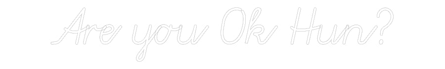 Text: Are You Ok Hun? Text Align: left Font: RocketColour: PinkSize: 100cm wide / 100cm X 13.67cm / 39.37in X 5.38inBackboard: Cut to Letter (free upgrade)Jacket: White JacketMounting: Wall mounting screwsAdd a Heart or Star (Optional): None (Default)Neon Tube Thickness: Classi...