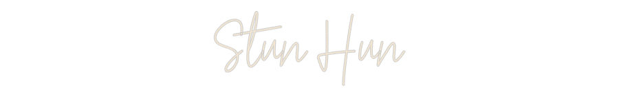 Text: Stun Hun Text Align: leftFont: HestericaColour: Warm WhiteSize: 40cm wide / 40cm X 15.74cm / 15.75in X 6.2inBackboard: Cut to ShapeBackboard Colour: Clear Acrylic BackboardJacket: Coloured JacketMounting: Wall mounting screwsAdd a Heart or Star (Optional): None (Default)Neon Tu...