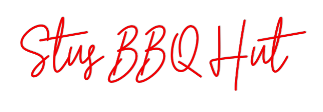 Text: Stus BBQ Hut Text Align: CenterFont: HestericaColor: RedSize: 100cm wide / 100cm X 25.85cm / 39.37in X 10.18inMaterial: Outdoor (+30%) Backboard: Cut to Letter (free upgrade)Jacket: Coloured JacketMounting: Fast mount kitAdd a Heart or Star (Optional): None (Default)Neon Tube Thicknes...