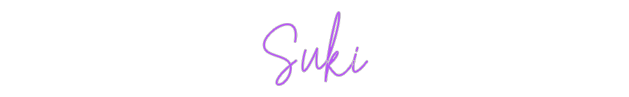 Text: Suki Text Align: LeftFont: HestericaColor: PurpleSize: 40cm wide / 40cm X 28.57cm / 15.75in X 11.25inBackboard: Cut to Letter (free upgrade)Jacket: Coloured JacketMounting: Wall mounting screwsAdd a Heart or Star (Optional): None (Default)Neon Tube Thickness: Classic Tube (6mm)...