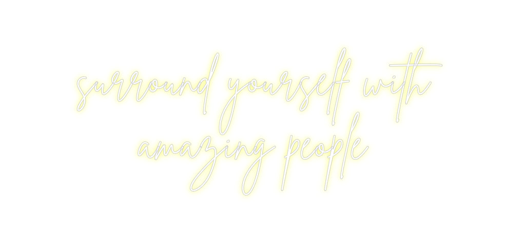 Text: surround yourself with amazing people Text Align: center Font: BrittanyColour: YellowSize: 180cm wide / 180cm X 75.59cm / 70.87in X 29.76inBackboard: Cut to Letter (free upgrade)Jacket: Coloured JacketMounting: HangingAdd a Heart or Star (Optional): None (Default)Neon Tu...