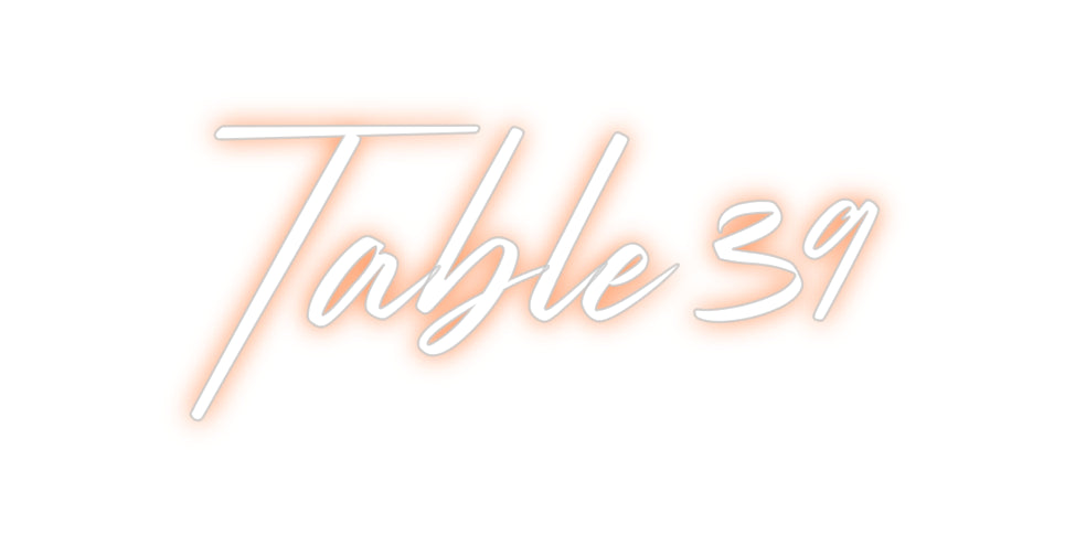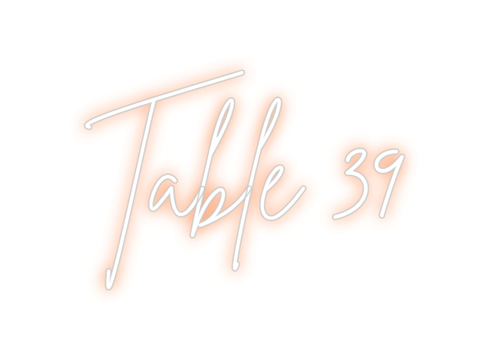 Text: Table 39 Text Align: center Font: StrudeColour: OrangeSize: 60cm wide / 60cm X 26.55cm / 23.62in X 10.45inBackboard: Cut to Letter (free upgrade)Jacket: White JacketMounting: Wall mounting screwsAdd a Heart or Star (Optional): None (Default)Neon Tube Thickness: Bold Tube ...