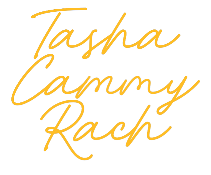 Text: Tasha Cammy Rach Text Align: CenterFont: RocketColor: Light OrangeSize: 60cm wide / 60cm X 65.54cm / 23.62in X 25.8inMaterial: IndoorBackboard: Cut to ShapeBackboard Color: Clear Acrylic BackboardJacket: Coloured JacketMounting: HangingAdd a Heart or Star (Optional): None (Default)N...