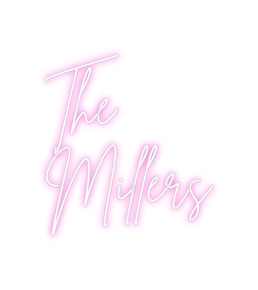 Text: The Millers Text Align: left Font: BrittanyColour: PinkSize: 120cm wide / 120cm X 127.66cm / 47.24in X 50.26inBackboard: Cut to ShapeBackboard Colour: Clear Acrylic BackboardJacket: Coloured JacketMounting: Wall mounting screwsNeon Tube Thickness: Bold Tube (8mm) (free u...
