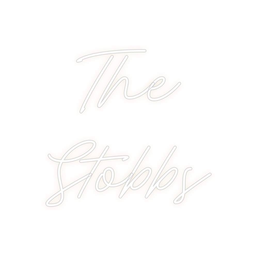 Text: The Stobbs Text Align: center Font: RocketColour: Warm WhiteSize: 40cm wide / 40cm X 37.93cm / 15.75in X 14.93inBackboard: Cut to ShapeJacket: White JacketMounting: Wall mounting screwsAdd a Heart or Star (Optional): None (Default)Neon Tube Thickness: Classic Tube (6mm)Re...