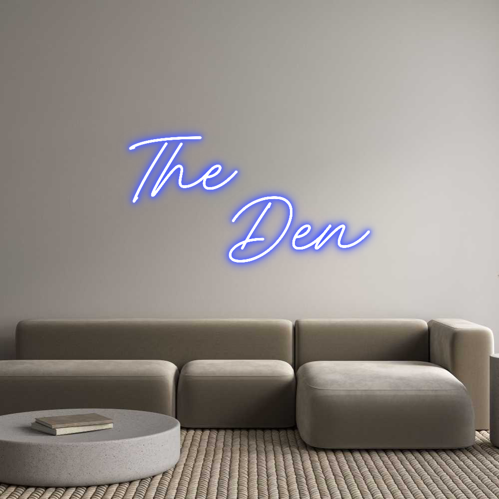 Text: The Den Text Align: LeftFont: RocketColor: BlueSize: 40cm wide / 40cm X 27.07cm / 15.75in X 10.66inMaterial: IndoorBackboard: Cut to ShapeBackboard Color: Clear Acrylic BackboardJacket: Coloured JacketMounting: HangingAdd a Heart or Star (Optional): None (Default)Neon Tube Thickn...