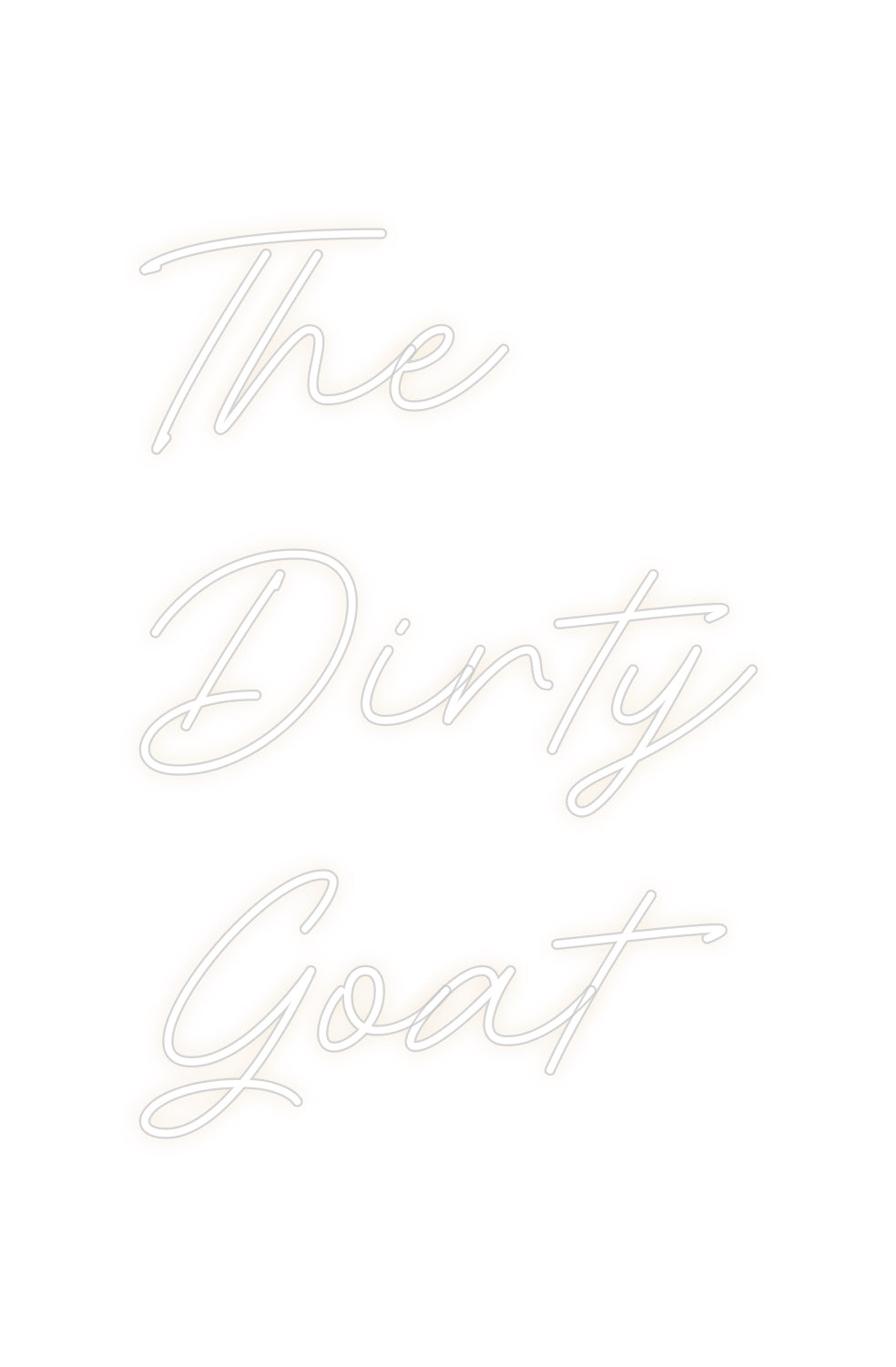 Text: The Dirty Goat Text Align: left Font: RocketColour: Warm WhiteSize: 40cm wide / 40cm X 58.59cm / 15.75in X 23.07inBackboard: Whole Board (free upgrade)Backboard Colour: Clear Acrylic BackboardJacket: White JacketMounting: Wall mounting screwsAdd a Heart or Star (Optional): No...