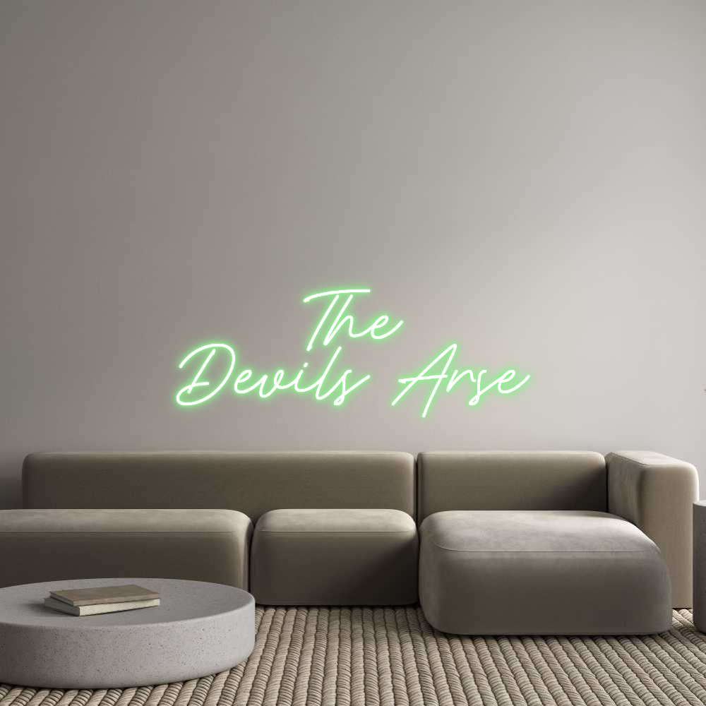 Original LogoText: The Devils Arse Text Align: CenterFont: RocketColor: Light GreenSize: 60cm wide / 60cm X 26.77cm / 23.62in X 10.54inMaterial: IndoorBackboard: Cut to ShapeBackboard Color: Clear Acrylic BackboardJacket: White JacketMounting: Wall mounting screwsAdd a Heart or Star (Optio...