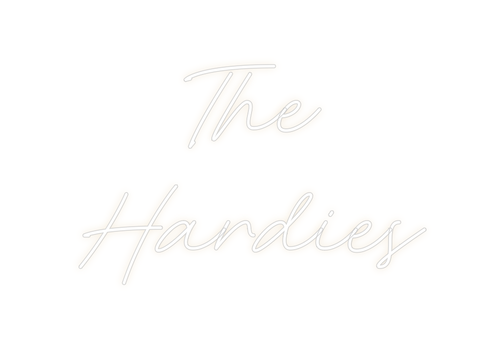 Text: The Hardies Text Align: center Font: RocketColour: Warm WhiteSize: 120cm wide / 120cm X 73.34cm / 47.24in X 28.88inBackboard: Cut to ShapeBackboard Colour: Clear Acrylic BackboardJacket: White JacketMounting: HangingAdd a Heart or Star (Optional): None (Default)Neon Tube Thickness: Classic...