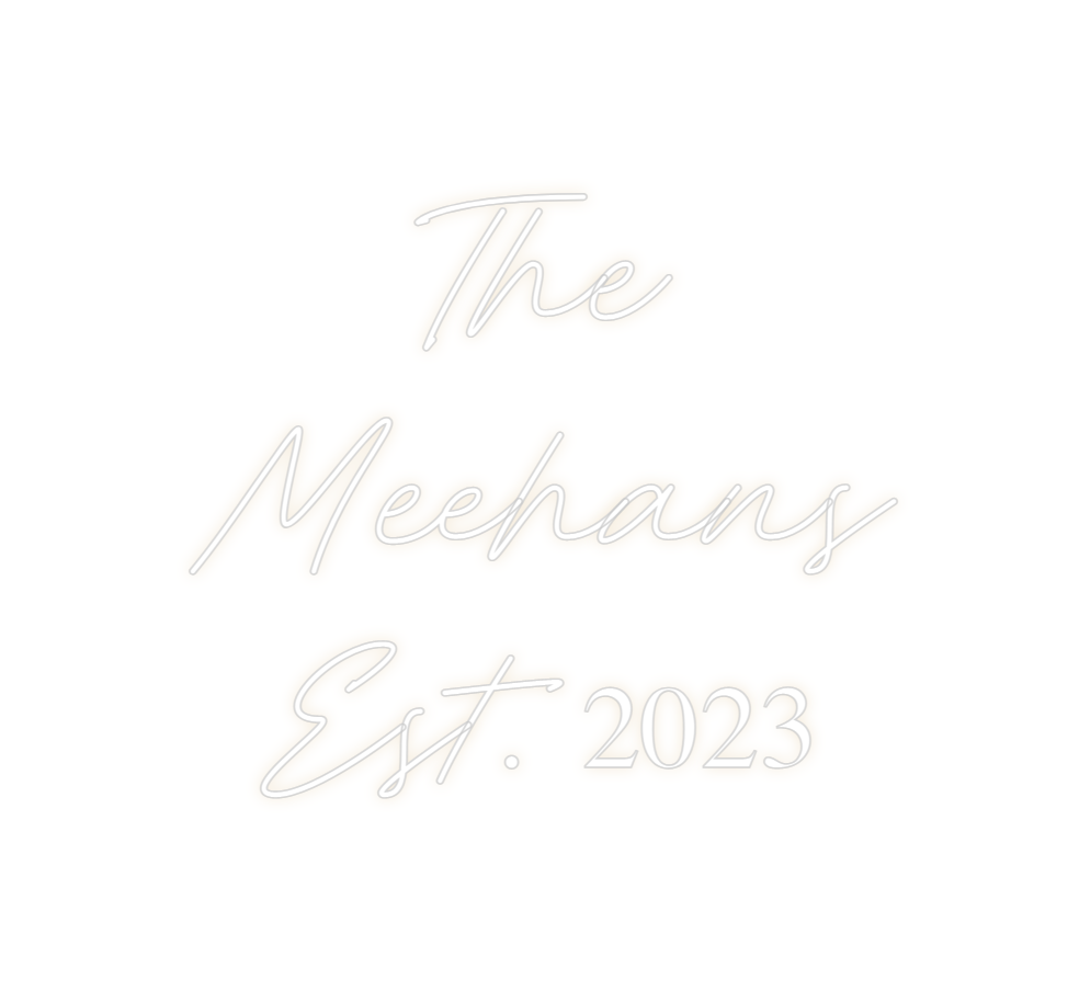 Text: The Meehans Est. 2023 Text Align: center Font: RocketColour: Warm WhiteSize: 60cm wide / 60cm X 51.46cm / 23.62in X 20.26inBackboard: Cut to Letter (free upgrade)Jacket: Coloured JacketMounting: Wall mounting screwsNeon Tube Thickness: Bold Tube (8mm) (free upgrade)Remot...