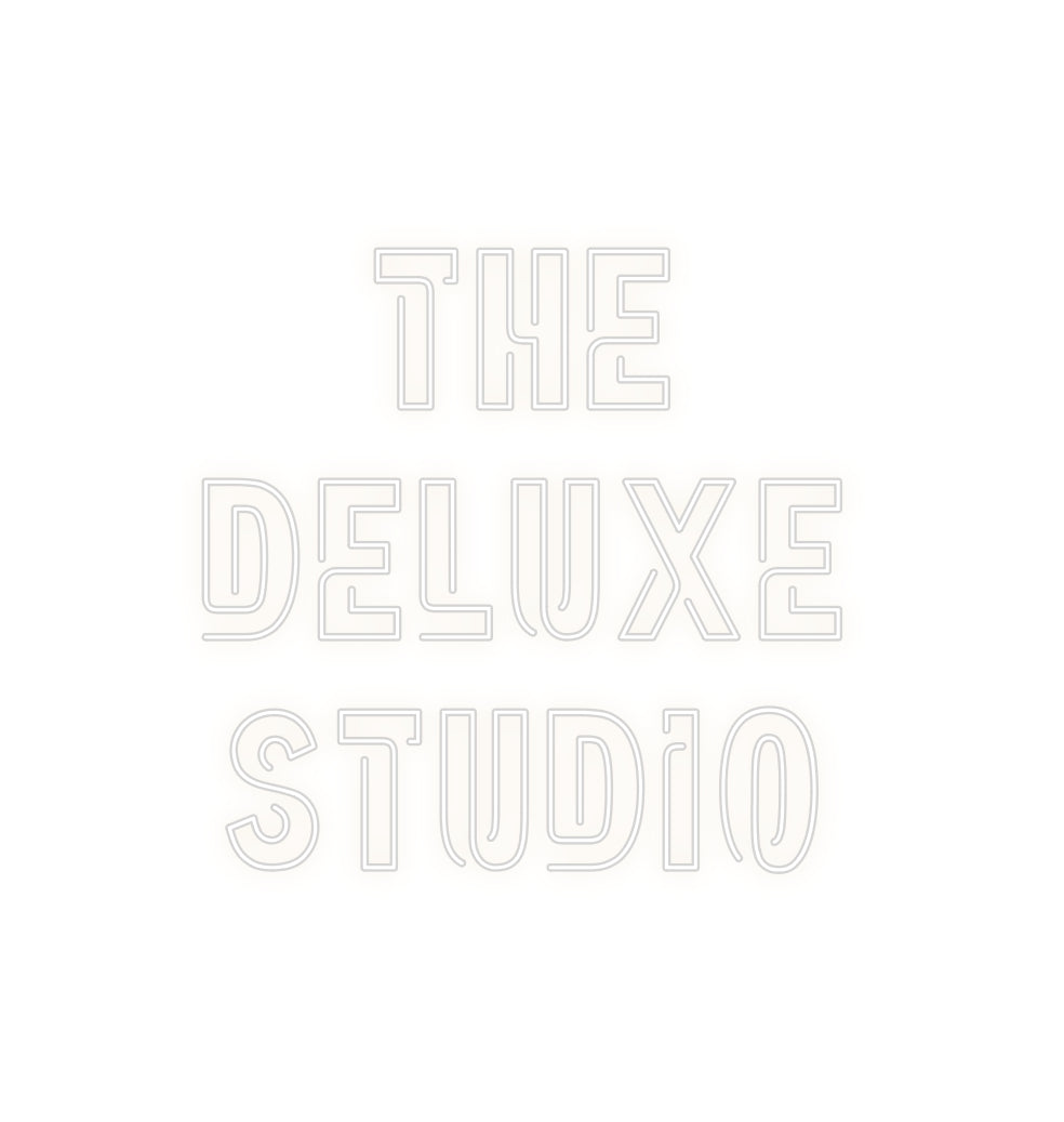 Text: The Deluxe Studio Text Align: center Font: NeonColour: Warm WhiteSize: 100cm wide / 100cm X 99.33cm / 39.37in X 39.11inBackboard: Cut to Letter (free upgrade)Jacket: White JacketMounting: Wall mounting screwsAdd a Heart or Star (Optional): None (Default)Neon Tube Thic...