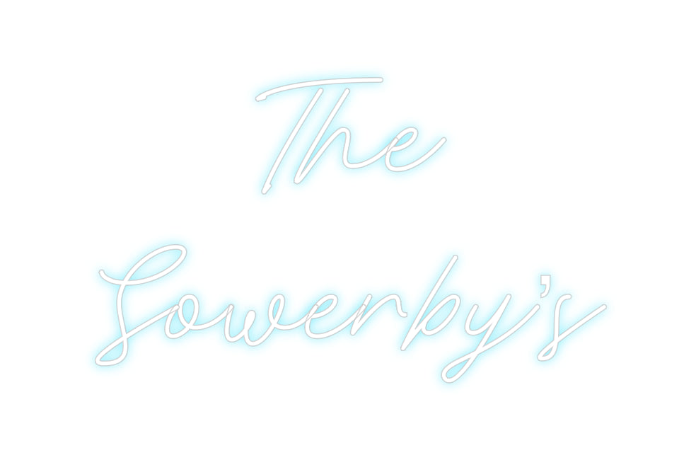 Text: The Sowerby’s Text Align: center Font: RocketColour: Ice BlueSize: 60cm wide / 60cm X 36.01cm / 23.62in X 14.18inBackboard: Cut to ShapeBackboard Colour: Clear Acrylic BackboardJacket: White JacketMounting: HangingAdd a Heart or Star (Optional): HeartNeon Tube Thickness...