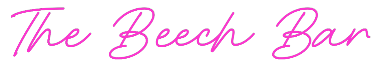 Text: The Beech Bar Text Align: LeftFont: RocketColor: PinkSize: 80cm wide / 80cm X 11.62cm / 31.5in X 4.57inMaterial: Outdoor (+30%) Backboard: Cut to ShapeBackboard Color: Clear Acrylic BackboardJacket: Coloured JacketMounting: Wall mounting screwsAdd a Heart or Star (Optional): None (Def...