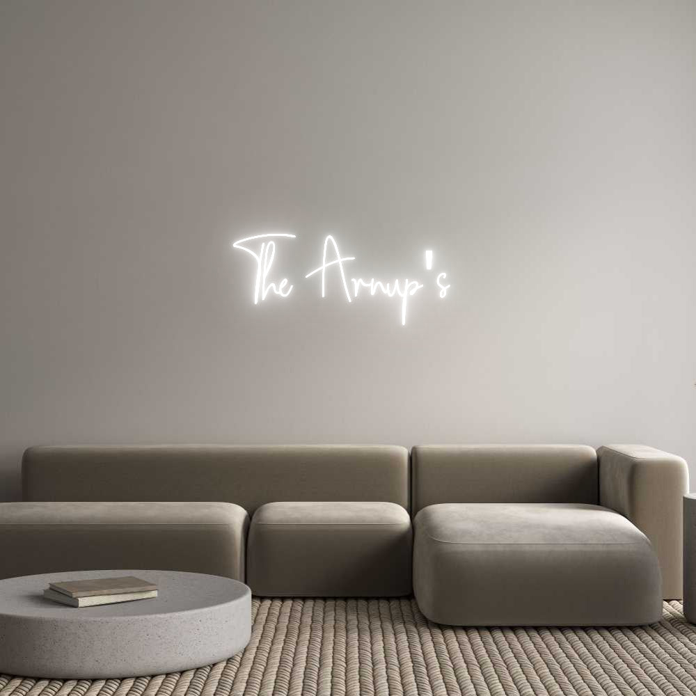 Text: The Arnups Text Align: left Font: BrittanyColour: WhiteSize: 60cm wide / 60cm X 22.82cm / 23.62in X 8.98inBackboard: Cut to Letter (free upgrade)Jacket: Coloured JacketMounting: Wall mounting screwsAdd a Heart or Star (Optional): HeartNeon Tube Thickness: Bold Tube (8mm) ...