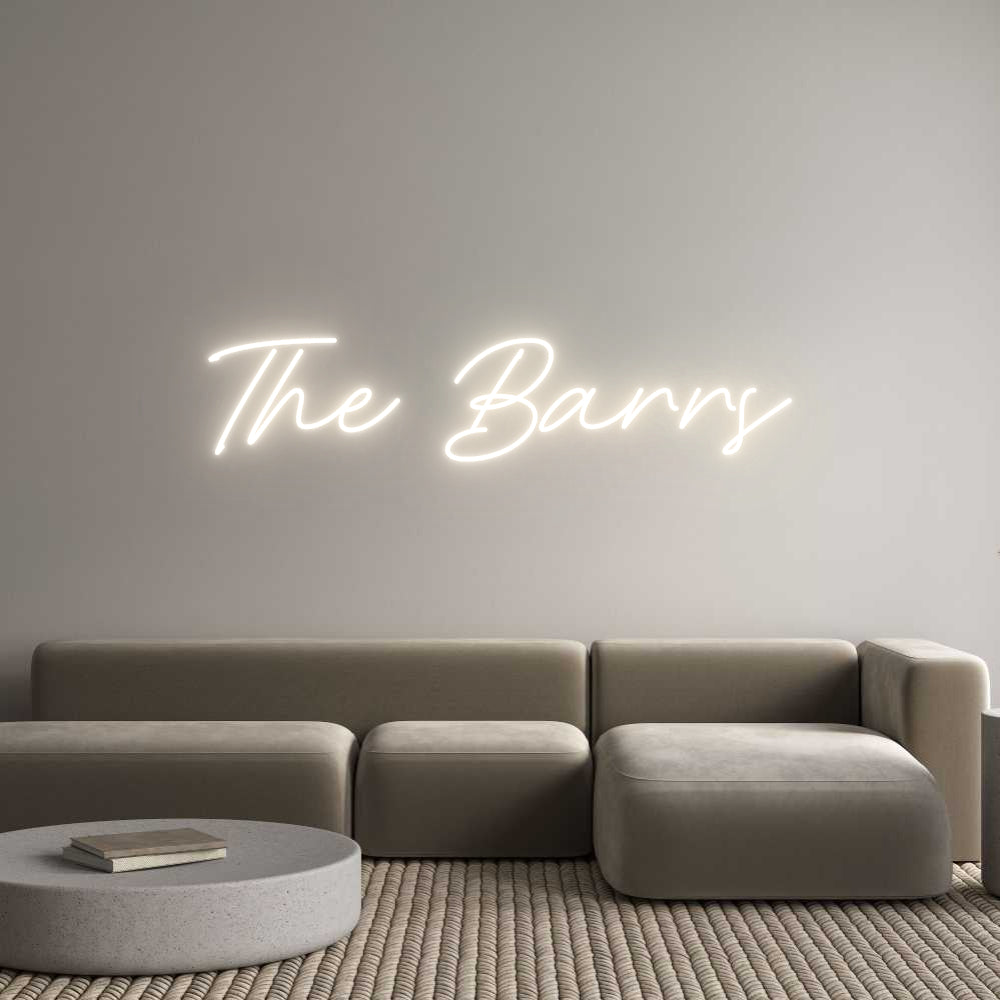 Text: The Barratt's Text Align: LeftFont: BrittanyColor: Warm WhiteSize: 180cm wide / 180cm X 63.23cm / 70.87in X 24.89inBackboard: Cut to Letter (free upgrade)Jacket: Coloured JacketMounting: Fast mount kitAdd a Heart or Star (Optional): None (Default)Neon Tube Thickness: Bold Tube ...