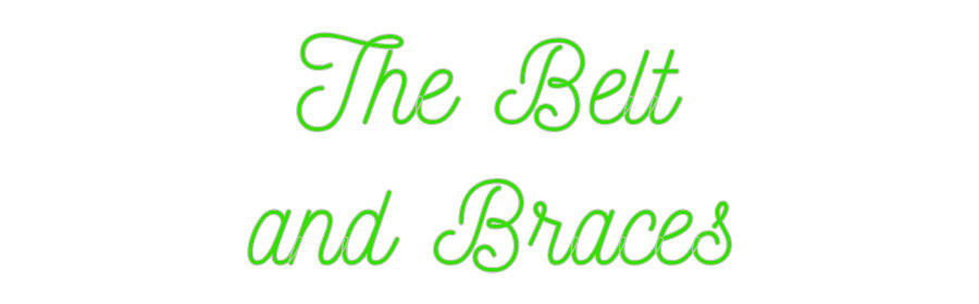 Text: The Belt and Braces Text Align: CenterFont: NickainleyColor: GreenSize: 80cm wide / 80cm X 41.17cm / 31.5in X 16.21inMaterial: IndoorBackboard: Cut to Letter (free upgrade)Jacket: Coloured JacketMounting: Wall mounting screwsAdd a Heart or Star (Optional): None (Default)Neon Tube Thi...