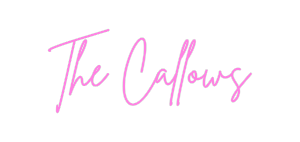 Text: The Callows Text Align: left Font: Brittany Colour: Baby PinkSize: 160cm wide / 160cm X 66.21cm / 62.99in X 26.07inBackboard: Cut to Letter (free upgrade)Jacket: Coloured JacketMounting: Wall mounting screwsNeon Tube Thickness: Classic Tube (6mm)Remote Dimmer: YesPo...