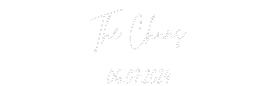 Text: The Chuns 06.07.2024 Text Align: center Font: BrittanyColour: BlueSize: 60cm wide / 60cm X 39.02cm / 23.62in X 15.36inBackboard: Cut to Letter (free upgrade)Jacket: Coloured JacketMounting: Wall mounting screwsAdd a Heart or Star (Optional): None (Default)Neon Tube Thick...