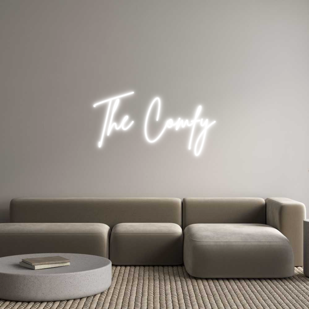 Text: The Comfy Text Align: LeftFont: BrittanyColor: WhiteSize: 140cm wide / 140cm X 69.5cm / 55.12in X 27.36inBackboard: Cut to Letter (free upgrade)Jacket: Coloured JacketMounting: Wall mounting screwsAdd a Heart or Star (Optional): None (Default)Neon Tube Thickness: Bold Tube (8m...