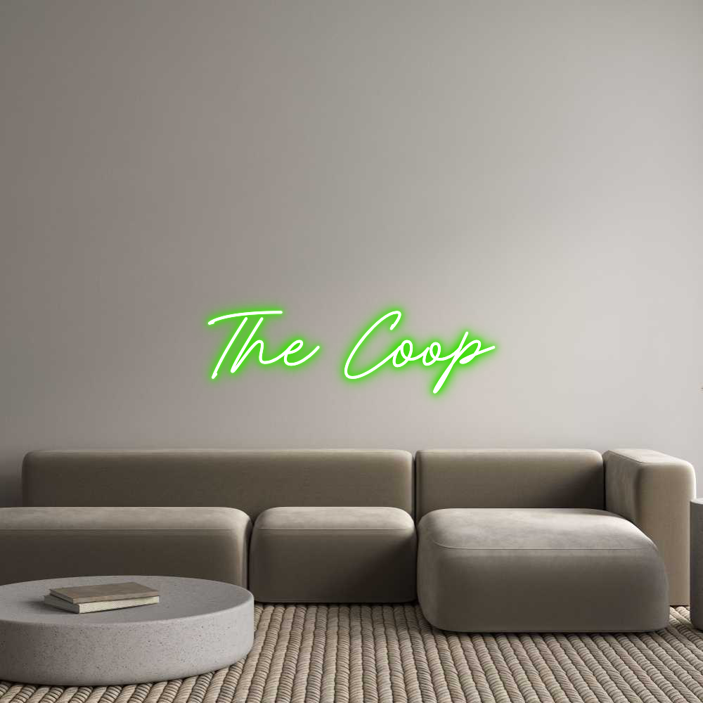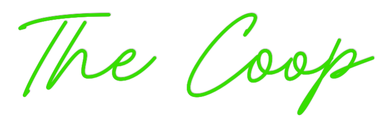 Original LogoText: The Coop Text Align: LeftFont: RocketColor: GreenSize: 80cm wide / 80cm X 23.12cm / 31.5in X 9.1inMaterial: IndoorBackboard: Cut to ShapeBackboard Color: Clear Acrylic BackboardJacket: Coloured JacketMounting: HangingAdd a Heart or Star (Optional): None (Default)Neon Tube...