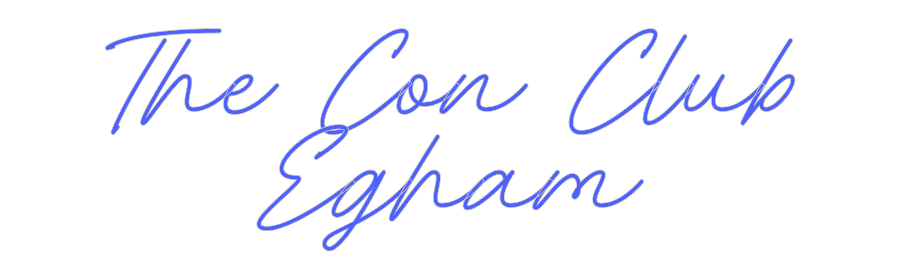 Text: The Con Club Egham Text Align: centerFont: RocketColour: BlueSize: 60cm wide / 60cm X 24.15cm / 23.62in X 9.51inBackboard: Cut to Letter (free upgrade)Jacket: Coloured JacketMounting: Wall mounting screwsAdd a Heart or Star (Optional): None (Default)Neon Tube Thickness: Bold T...