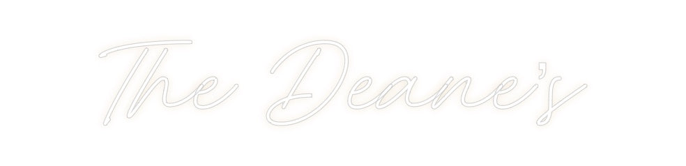Text: The Deane’s Text Align: left Font: RocketColour: Warm WhiteSize: 120cm wide / 120cm X 21.83cm / 47.24in X 8.59inBackboard: Cut to Letter (free upgrade)Jacket: White JacketMounting: Wall mounting screwsAdd a Heart or Star (Optional): None (Default)Neon Tube Thickness: Bold Tube ...