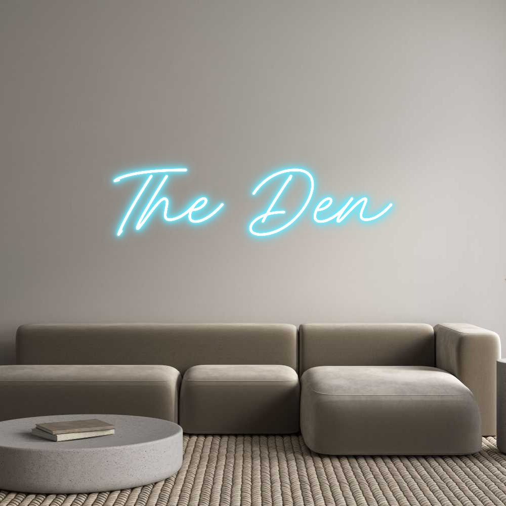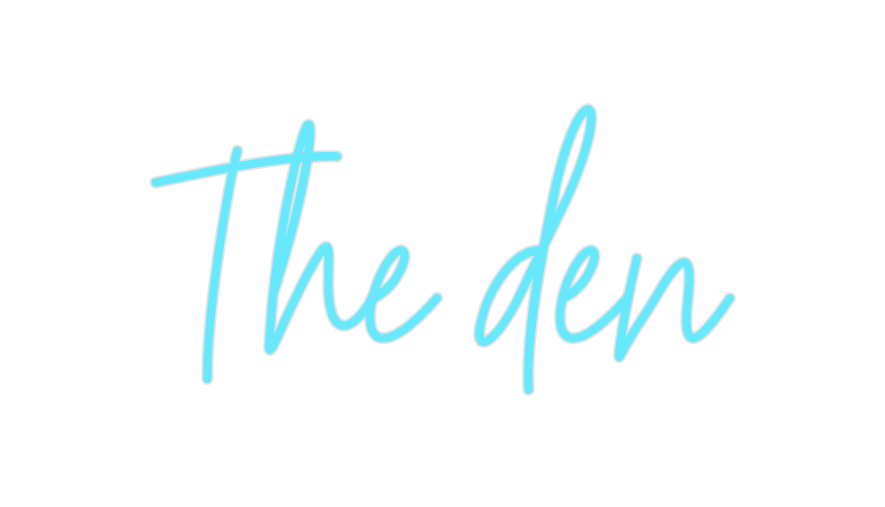 Text: The den Text Align: left Font: Hesterica Colour: Ice BlueSize: 60cm wide / 60cm X 30.73cm / 23.62in X 12.1inBackboard: Cut to ShapeBackboard Colour: Clear Acrylic BackboardJacket: Coloured JacketMounting: Wall mounting screwsNeon Tube Thickness: Classic Tube (6mm)Re...