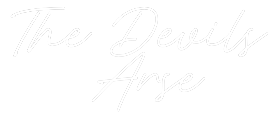Text: The Devils Arse Line 1: The Font: Rocket Color: Red Line 2: Devils Font: Rocket Color: Red Arse Font: Rocket Color: Red Text Align: Center Size: Custom 60.00 x 27.54 cm 23.62 x 10.84 in Material: Indoor Backboard: Whole Board (free upgrade) Backboard Color: Clear Acrylic Ba...