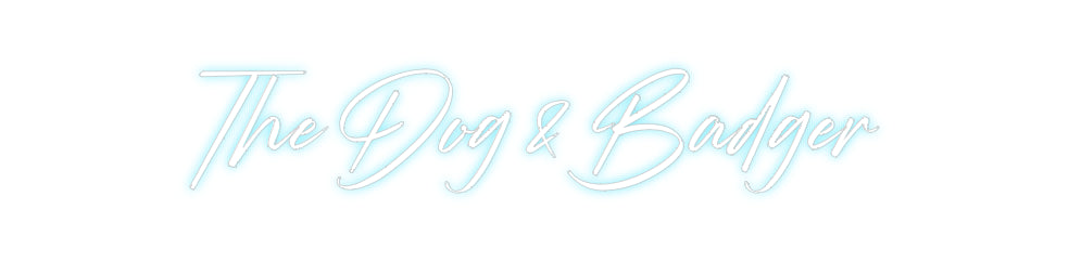Text: The Dog & Badger Text Align: left Font: StrudeColour: Ice BlueSize: 80cm wide / 80cm X 14.85cm / 31.5in X 5.85inBackboard: Cut to ShapeBackboard Colour: Clear Acrylic BackboardJacket: Coloured JacketMounting: Wall mounting screwsAdd a Heart or Star (Optional): None (D...