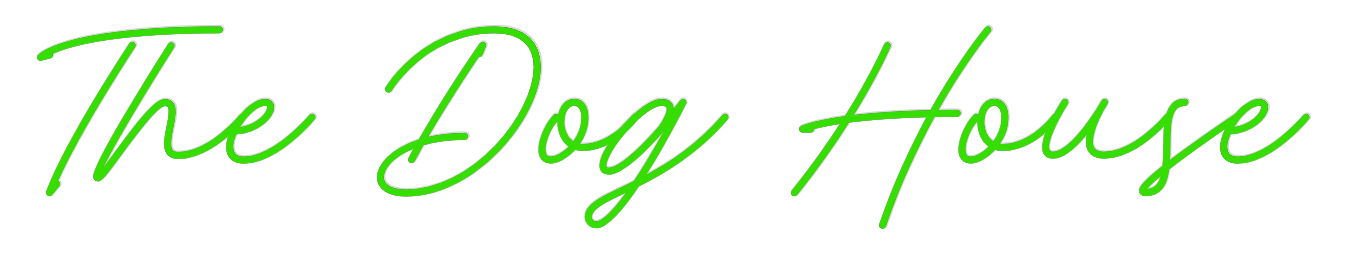 Text: The dog house Text Align: leftFont: GruenewaldColour: PinkSize: 100cm wide / 100cm X 21.31cm / 39.37in X 8.39inBackboard: Cut to Letter (free upgrade)Jacket: Coloured JacketMounting: Wall mounting screwsAdd a Heart or Star (Optional): None (Default)Neon Tube Thickness: Bold Tub...