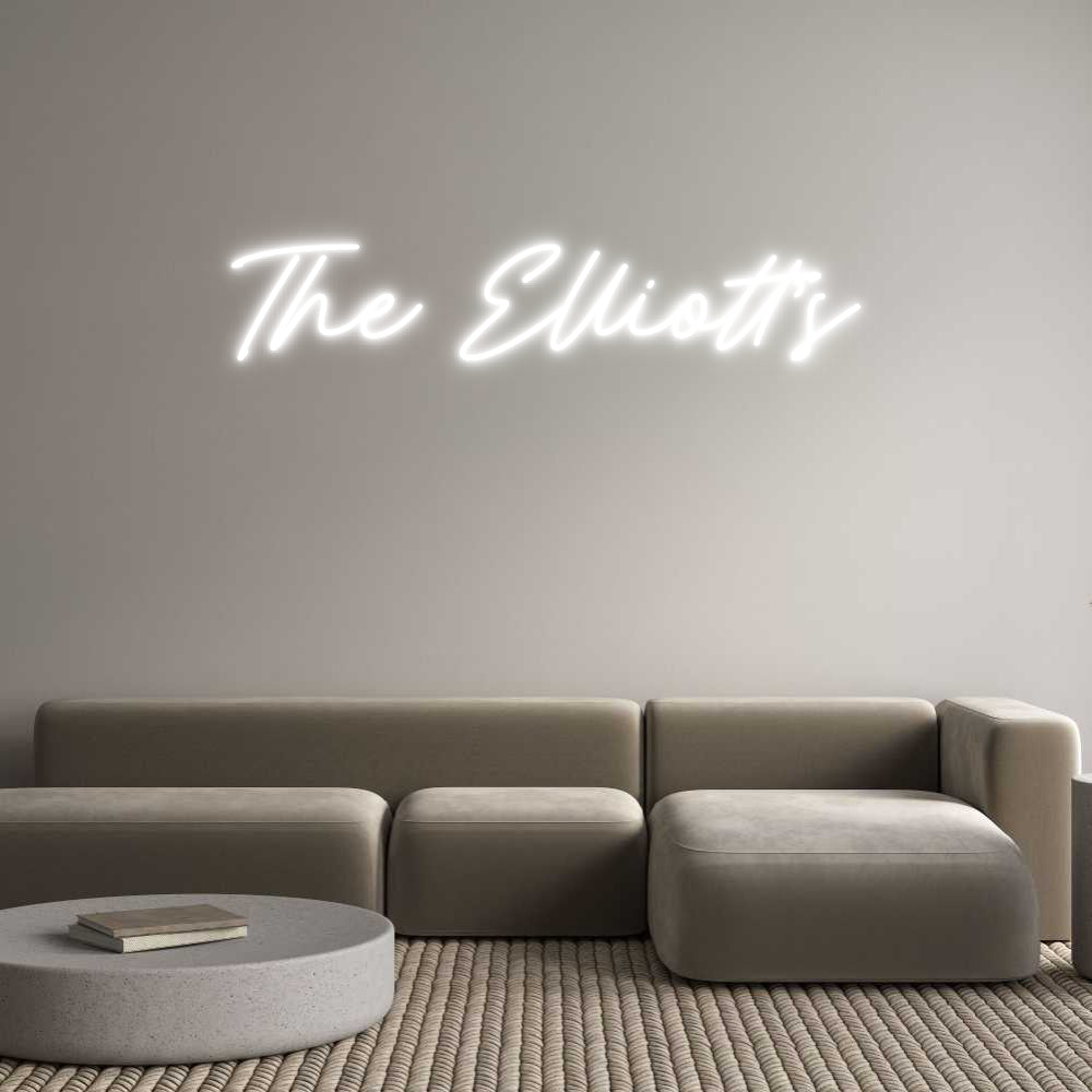 Text: The Elliott’s Text Align: center Font: RocketColour: Colour Changing Neon sign/ RGB +85% price increase. Lights can be controlled through remoteSize: 120cm wide / 120cm X 23.1cm / 47.24in X 9.09inBackboard: Cut to Letter (free upgrade)Jacket: Coloured JacketMounting: Wal...