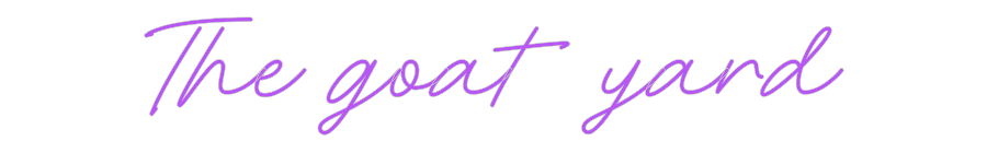 Text: The goat yard Text Align: leftFont: NeonColour: PurpleSize: 180cm wide / 180cm X 21.1cm / 70.87in X 8.31inBackboard: Cut to Letter (free upgrade)Jacket: Coloured JacketMounting: Wall mounting screwsAdd a Heart or Star (Optional): None (Default)Neon Tube Thickness: Bold Tube (8m...