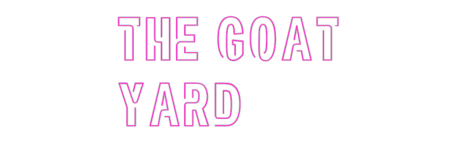 Text: The goat yard Text Align: leftFont: NeonColour: PinkSize: 80cm wide / 80cm X 9.38cm / 31.5in X 3.69inBackboard: Cut to Letter (free upgrade)Jacket: Coloured JacketMounting: Wall mounting screwsAdd a Heart or Star (Optional): None (Default)Neon Tube Thickness: Bold Tube (8mm) (f...