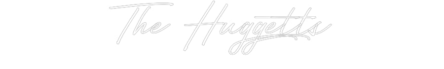 Text: The Huggetts Text Align: leftFont: BayshoreColour: WhiteSize: 80cm wide / 80cm X 21.42cm / 31.5in X 8.43inBackboard: Cut to Letter (free upgrade)Jacket: Coloured JacketMounting: HangingAdd a Heart or Star (Optional): None (Default)Neon Tube Thickness: Bold Tube (8mm) (free upgrade)Remote Di...