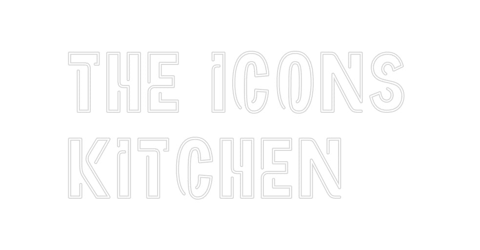 Text: The Icons Kitchen Text Align: left Font: NeonColour: WhiteSize: 60cm wide / 60cm X 27.6cm / 23.62in X 10.86inBackboard: Cut to Letter (free upgrade)Jacket: Coloured JacketMounting: Wall mounting screwsAdd a Heart or Star (Optional): None (Default)Neon Tube Thickness: Bold Tube...
