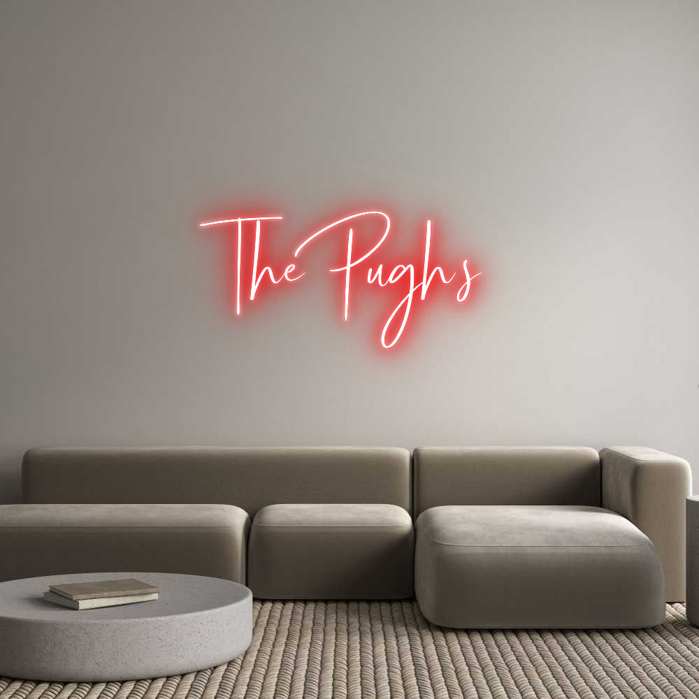 Text: The Pugh’s Text Align: leftFont: OttawaColour: RedSize: 60cm wide / 60cm X 27.96cm / 23.62in X 11.01inBackboard: Cut to Letter (free upgrade)Jacket: Coloured JacketMounting: Wall mounting screwsAdd a Heart or Star (Optional): None (Default)Neon Tube Thickness: Classic Tube (6m...