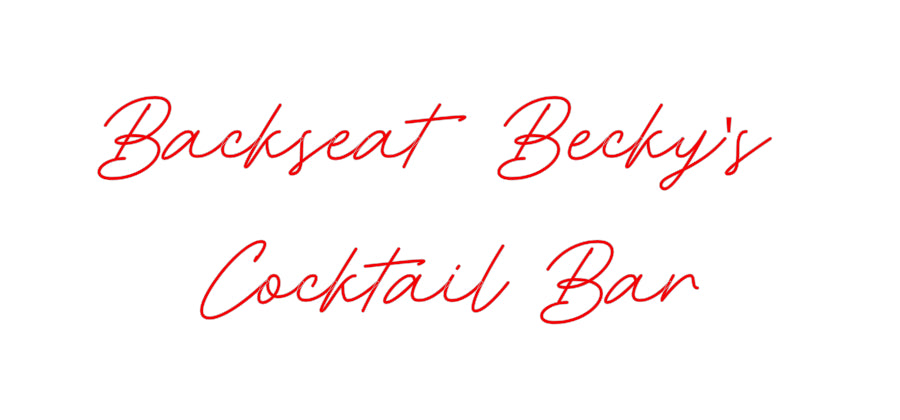 Text: Backseat Becky's Cocktail Bar Text Align: centerFont: RocketColour: RedSize: 120cm wide / 120cm X 57.04cm / 47.24in X 22.46inBackboard: Cut to Letter (free upgrade)Jacket: Coloured JacketMounting: HangingAdd a Heart or Star (Optional): None (Default)Neon Tube Thickness: Cla...
