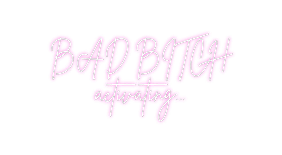 Text: BAD BITCH activating... Text Align: center Font: BrittanyColour: Baby PinkSize: 100cm wide / 100cm X 48.98cm / 39.37in X 19.28inBackboard: Cut to ShapeBackboard Colour: Clear Acrylic BackboardJacket: White JacketMounting: Wall mounting screwsAdd a Heart or Star (Optional...