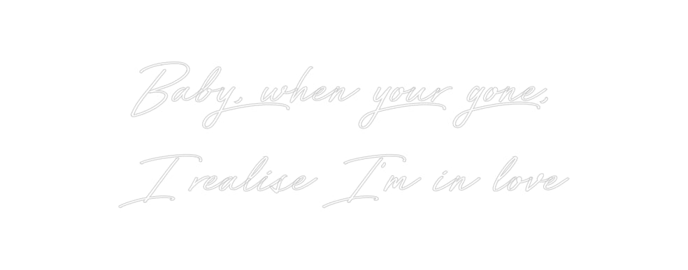Text: Baby, when your gone, I realise I’m in love Text Align: left Font: BayshoreColour: WhiteSize: 120cm wide / 120cm X 39.94cm / 47.24in X 15.72inBackboard: Cut to ShapeBackboard Colour: Clear Acrylic BackboardJacket: Coloured JacketMounting: Wall mounting screwsAdd a Heart ...