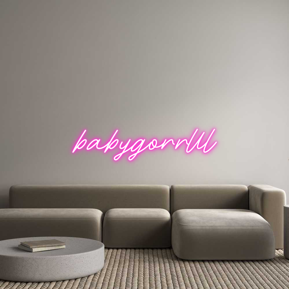 Text: babygorrlll Text Align: LeftFont: RocketColor: PinkSize: 80cm wide / 80cm X 17.46cm / 31.5in X 6.88inMaterial: IndoorBackboard: Cut to ShapeBackboard Color: Clear Acrylic BackboardJacket: White JacketMounting: HangingAdd a Heart or Star (Optional): None (Default)Neon Tube Thickness: C...